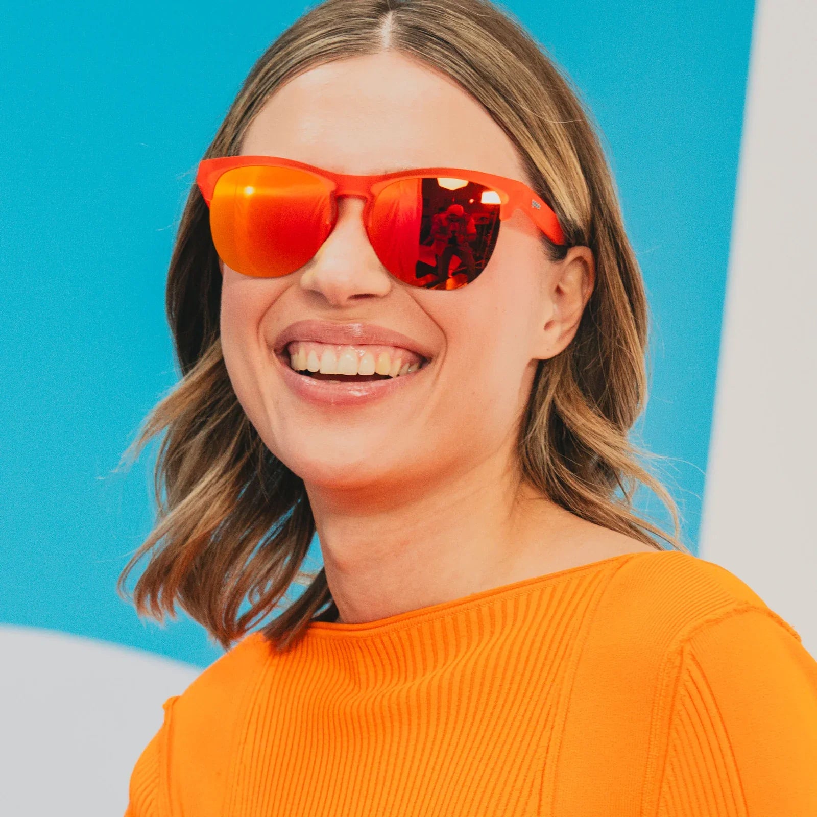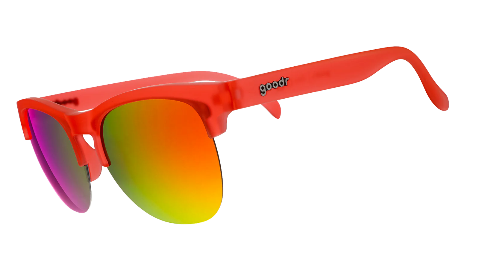 Welcome to Château de Maraschino, where bold style flows as freely as the top-shelf spirits. These striking orange half-rim frames and orange reflective lenses are a toast to indulgence—effortlessly cool, impossibly smooth, and just the right amount of over-the-top. Think vintage sports car energy meets VIP lounge exclusivity.