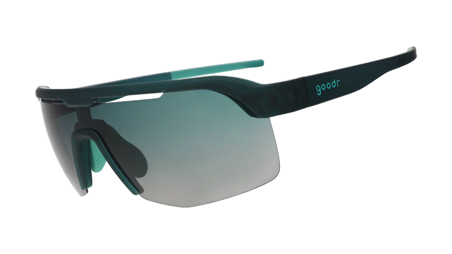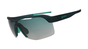 Teal Bolt Gs w/ green gradient lenses stay put & look sharp while attempting epic feats of athleticism, e.g. maintaining composure & not squealing in agony after leapfrogging full speed over a fire hydrant & accidentally landing on your padoobies.