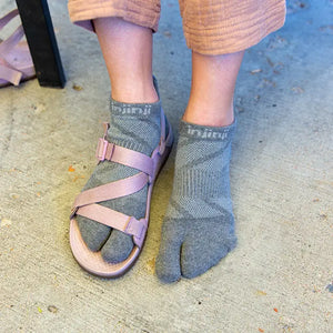 Slip on Injinji’s Split-Toe No-Show Cotton socks and slide into irresistible comfort. Whether you’re lounging at home or running errands, these ultra-soft tabi socks separate the big toe from the rest, creating space for the straps of your favourite sandals, slides, or thongs. The No-Show profile offers a discreet look, while plush fibres add comfort with every step. Plus, upcycled fibres reduce textile waste, giving you everyday comfort you can feel good in and about.
