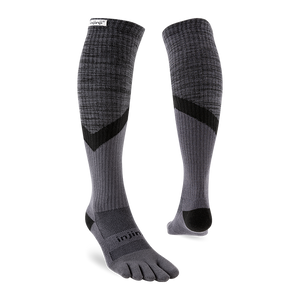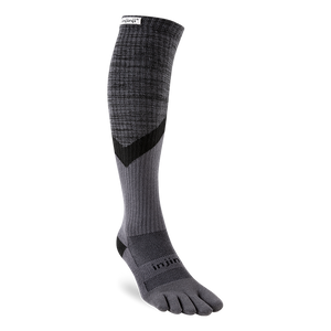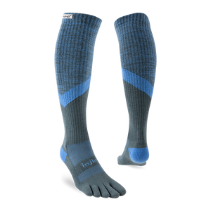 Elevate your trail adventures with the Trail Midweight Over the Calf. These performance toesocks prevent blisters by eliminating skin-on-skin friction, while the Over the Calf height offers knee-high lower leg protection to keep debris out. COOLMAX® EcoMade fibres with a mesh top help keep feet cool and dry, while a supportive arch band and targeted cushioning add comfort on unpredictable terrain.