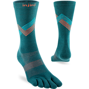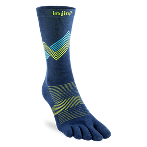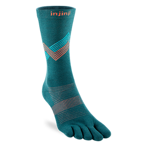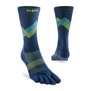 The newly redesigned Run Lightweight Crew is crafted for runners seeking ultimate comfort and performance without bulk. The innovative design wraps each toe to prevent blisters from skin-on-skin friction and allows your toes to splay and align naturally. Featuring COOLMAX® EcoMade fibres and a breathable mesh top, these socks keep your feet cool and dry, while seamless ergonomic construction and integrated arch support ensure a secure, slip-free fit. The secure mid-calf fit keeps dirt and debris out for uninterrupted adventures.