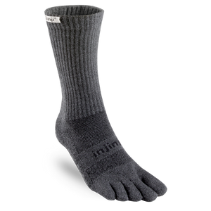 This is the sock for women who love to move fast across rugged terrain. With each toe wrapped in fabric to minimise friction, your toes are free splay so you can utilise your entire foot to get a confident grip and better balance on narrow, uneven trails. The crew length rides high to seal out debris, ergonomic patterning is tailored specifically for women’s feet, and a band under the arch adds support. COOLMAX® and a mesh top keep feet dry and cool, nylon fibres add durability, and midweight cushioning protects your feet.