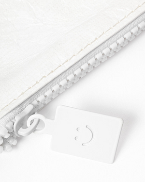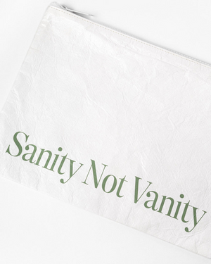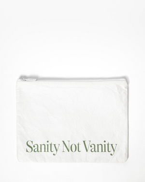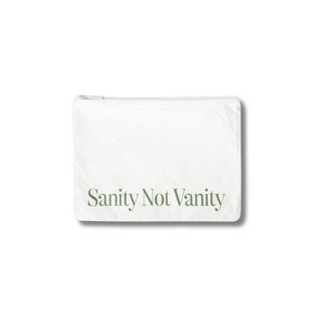 Say hello to your new travel essential! This splash-proof pouch features a secure zipper closure and our signature happy face pull. It’s perfect for stashing your essentials—whether packing toiletries for transit, organizing tech in your carry-on, gathering beach day must-haves, or bringing a pair of recovery crews after a tough workout. Plus, it serves as a reminder to embrace Sanity Not Vanity wherever you go!