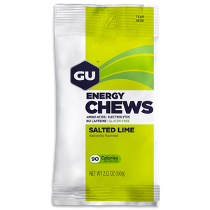 Created for daily training and competition, GU Energy Chews pack energy-dense calories in a portable packet to help sustain energy demands of long duration activities. Energy Chews contain carbohydrates to keep you fueled while delaying bonking by sparing your glycogen stores. Sodium, the primary electrolyte lost in sweat, aids in hydration by maintaining water balance. The branched-chain amino acids (leucine, valine, isoleucine) may reduce mental fatigue and decrease muscle damage. Formerly known as GU Chomps.